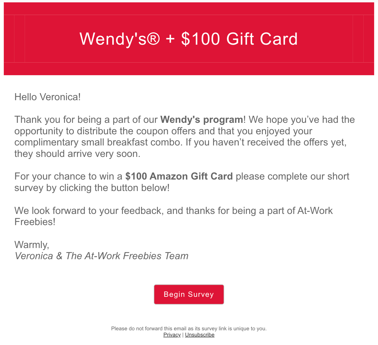In order to provide the most accurate report we survey the ambassadors, with your customized questions. This will give you great feedback straight from the consumer. In addition we send out a survey reminder, a second email to remind them of the survey and to submit photos. This will re-engage the audience and encourage offer usage. Please use the buttons below to view a sample of the survey invitation and the survey itself.