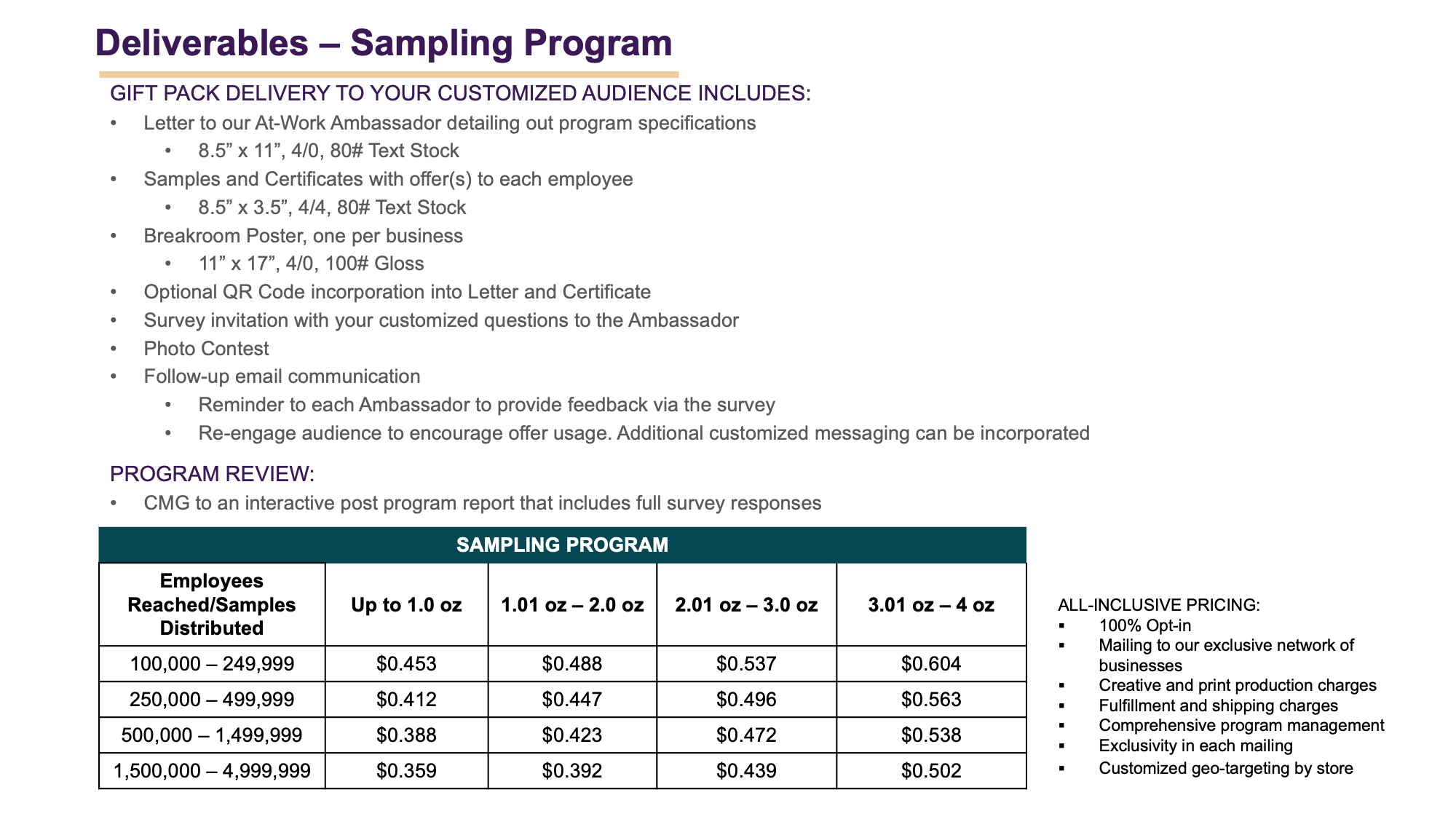 Detailed Campaign Analytics will be provided, including full responses and photos when used, to deployed Ambassador survey. Receive fullfillment details including numbers of samples distributed.